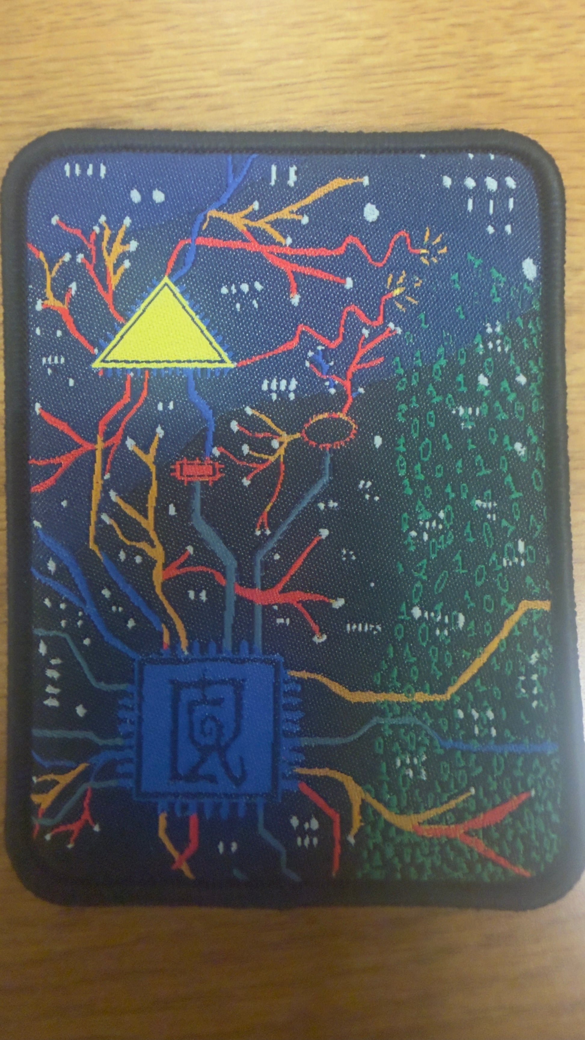 When aligned, the two boards form a continuous signal path. Binary flow and circuitry connect across both modules, visually representing escalation within the system.